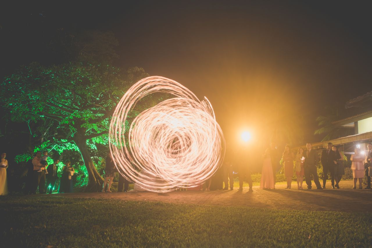 La recomendación es siempre que haces una actividad fuera de la recepción que esta sea a la entrada o en la finalización del evento pues logísticamente no se ve bien sacar a los invitados del confort que ya tienen para ir a las zonas de jardín a apreciar una actividad, esto puede ser hasta contraproducente, algunas personas lo pueden interpretar como un mensaje de despedida y si no es el cierre de la boda no queremos que una gran parte de los invitados nos deje, así que si vas a hacer un gran show al aire libre selecciónalo como un cierre de tu boda. Sera una linda formal de dar un último golpe de alegría para despedir a quienes te acompañe en ese día tan especial.